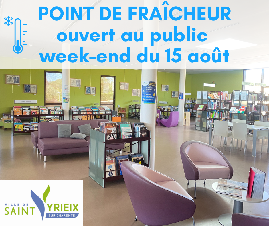 L’accueil « Point de fraîcheur » sera maintenu pendant tout le week-end du 15 août à la médiathèque de Saint-Yrieix sur Charente. Une permanence sera assurée aux horaires suivants : Jeudi : 14h00 […]