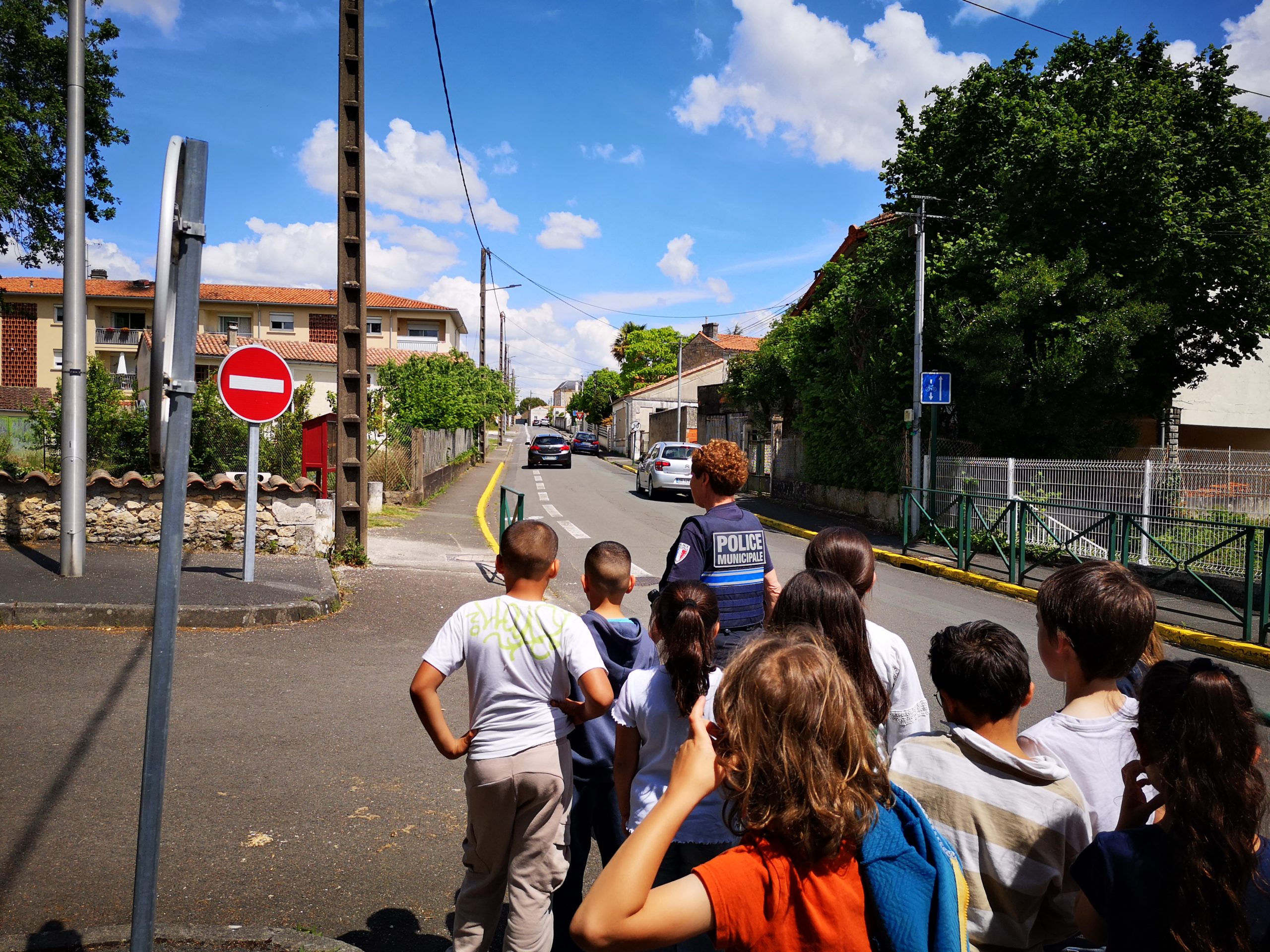 Durant tout le mois de mai chaque classe a réalisé la partie pratique de la formation sur le terrain dans les rues de Saint-Yrieix avec un agent de la Police Municipale de la ville.