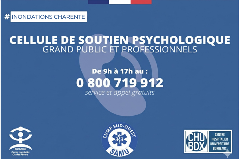 Dans le contexte des crues en cours sur le département, une cellule de soutien psychologique est activée afin d’accompagner les administrés touchés par cet événement.