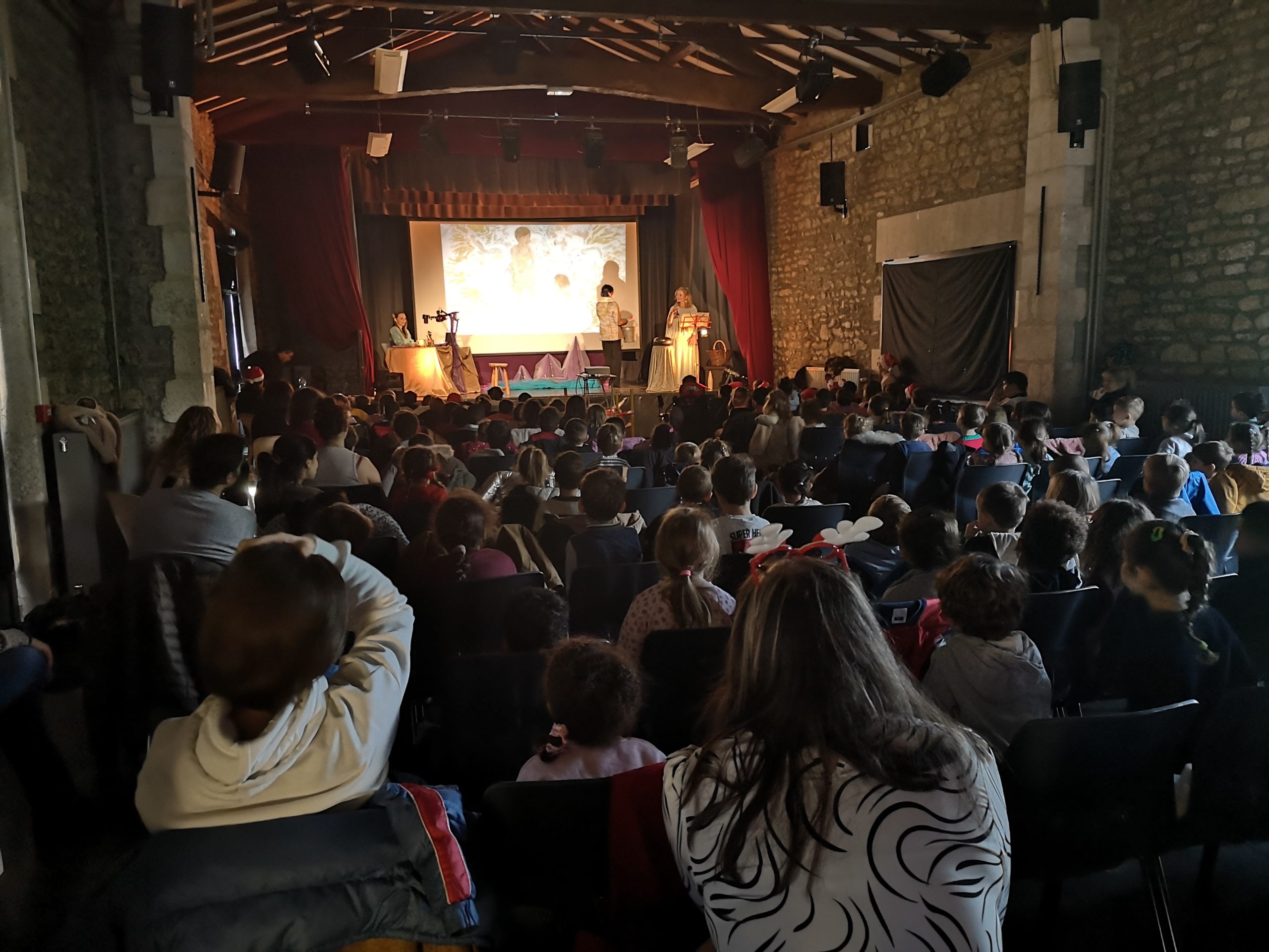 Jeudi 18 décembre, 523 enfants des écoles de Saint-Yrieix sur Charente accompagnés de leurs enseignants et accompagnateurs ont assisté au spectacle « Lili et la louve » de la Compagnie Le Paon Bleu : une histoire poétique sur la nature et l’amitié, sublimée par des dessins en direct et une projection d’images réalisées par l’illustratrice de l’album.